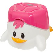 Patas antiderrapantes. El asiento es removible para usarlo como reductor en el baño. Cerrado es un práctico banco. Edad recomendada de 1 a 4 años. Disponible en azul con blanco y rosa con blanco.